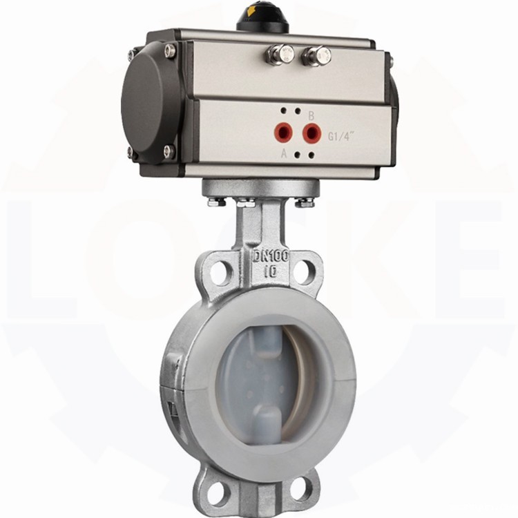 德国《LOCKE》洛克--进口气动衬氟蝶阀采用衬氟结构,阀体、阀板上均衬有PTFE或者F46等强耐腐蚀性材质,能有效的避免强腐蚀性介质对阀门的腐蚀,并具有良好的密封性能。该系列蝶阀用于化工等工业过程中对腐蚀性流体的控制,是调节或切断各种化学腐蚀性介质的解决方案。