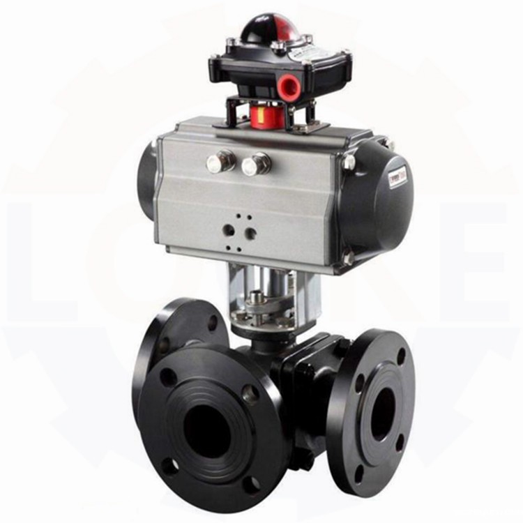 德国《LOCKE》洛克--进口气动三通球阀分L型和T型两种,可以满足不同的生产工艺要求。L型三通双口孔种,改变球芯与管道的相对角度,可以对三支管道流体实现不同的组合控制,L型适用于介质的流向切换,能使相互垂直的两个通道联通;T型孔道可起配比作用,T型适用于介质的分流,合流或流向切换,适用于液体、气体、蒸汽等介质的配比调节与控制。
