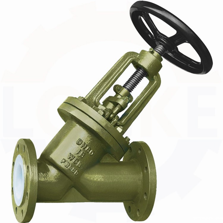 德国《LOCKE》洛克--进口Y型衬氟截止阀用在各种浓度的硫酸、盐酸、氢氟酸和各种有机酸、强酸,还适用在各种浓度的强碱有机溶剂以及其他腐蚀性介质的管道上。广泛应用在石油、化工等管路中做截断介质用,但需要强调的是氟塑料衬里的截止阀严禁用作流量调节,以免节流口处产生的高速介质冲蚀破坏密封面。